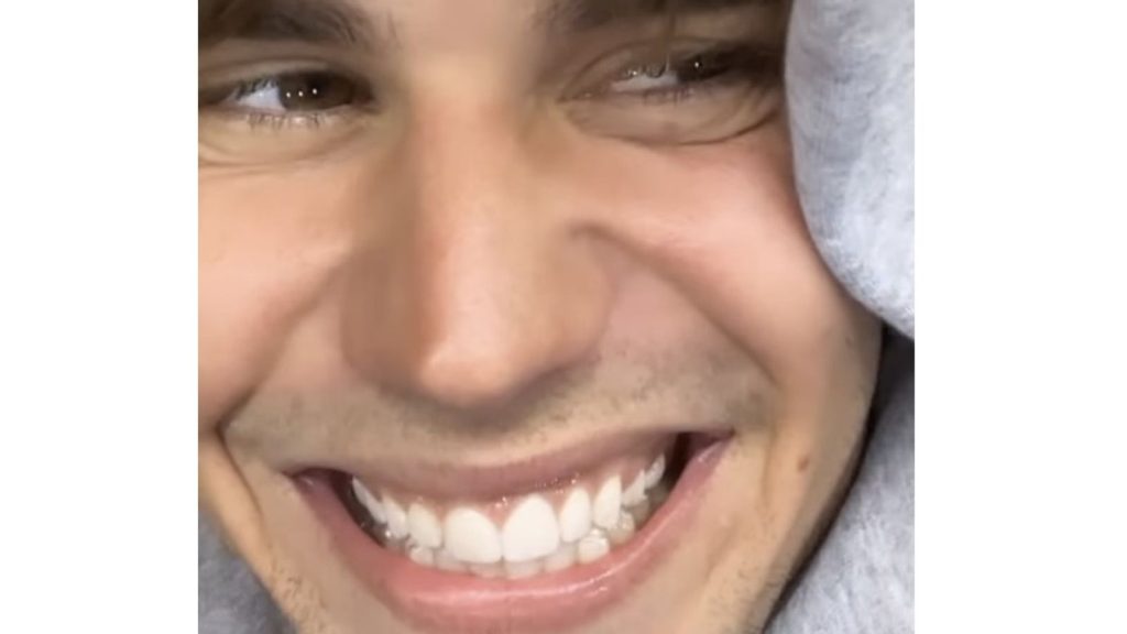 Justin Bieber compartilhou um vídeo dele exibindo um sorriso – um movimento inconsequente para a maioria das estrelas, mas enorme para ele, considerando que a paralisia facial forçou o cantor a cancelar sua turnê mundial.