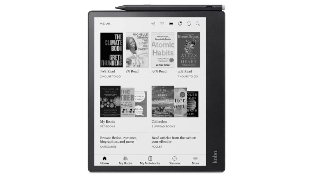 O tablet tem cerca de 32 GB de armazenamento e deve oferecer semanas de duração da bateria com uma única carga, mas isso dependerá muito de como você o usa. É totalmente compatível com audiolivros, para que você possa alternar entre ler ebooks e ouvir audiolivros Kobo com tecnologia sem fio Bluetooth.