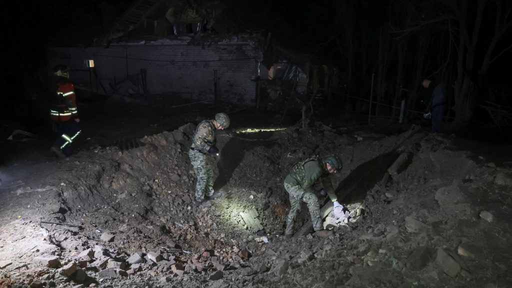Especialistas da polícia trabalham em um local de ataque aéreo russo em Kharkiv em 20 de setembro. Foto: Reuters