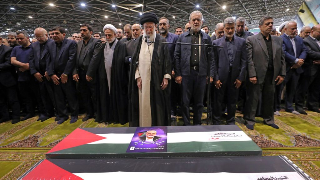 Dezenas de milhares de pessoas se reuniram na capital iraniana, Teerã, para o funeral de Ismail Haniyeho Hamas líder que os enlutados acreditavam ser essencial para negociações duradouras de cessar-fogo em Gaza.
