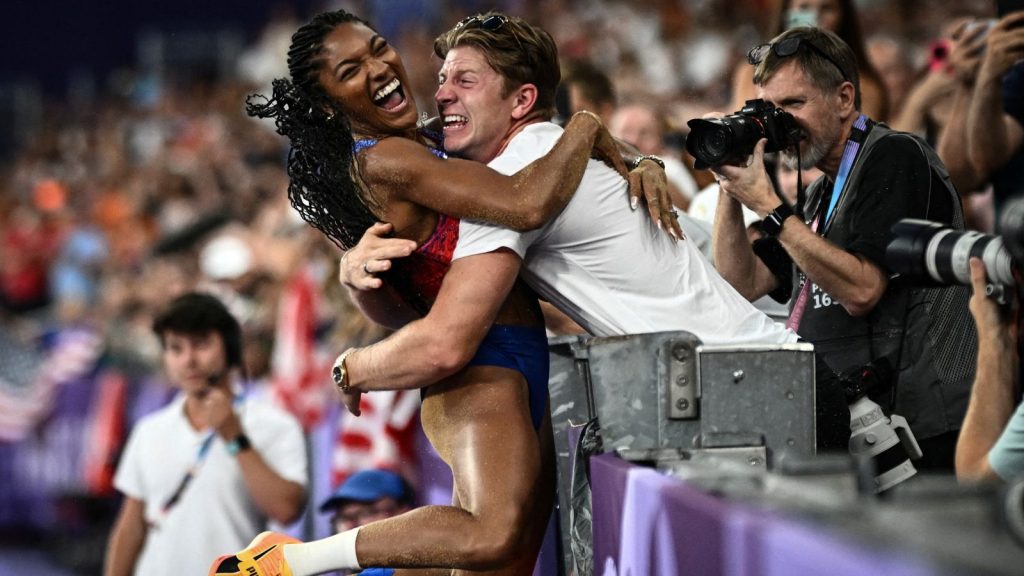 Tara Davis-Woodhall, da equipe dos EUA, alcançou a glória olímpica em 8 de agosto e correu direto para o marido no meio da multidão em um dos momentos mais emocionantes da competição. jogos de verão.