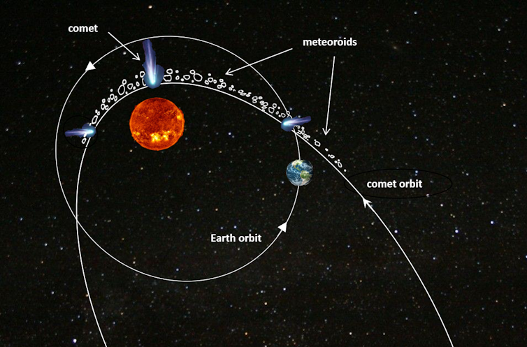 Uzaydan meteor üreten parçacıklar nereden geliyor? Bu parçacıkların bir kısmı güneş sisteminin oluşumundan beri var olmuştur, ancak çoğu belirli kuyruklu yıldızların Güneş etrafındaki yolculuğu sırasında üretilir.