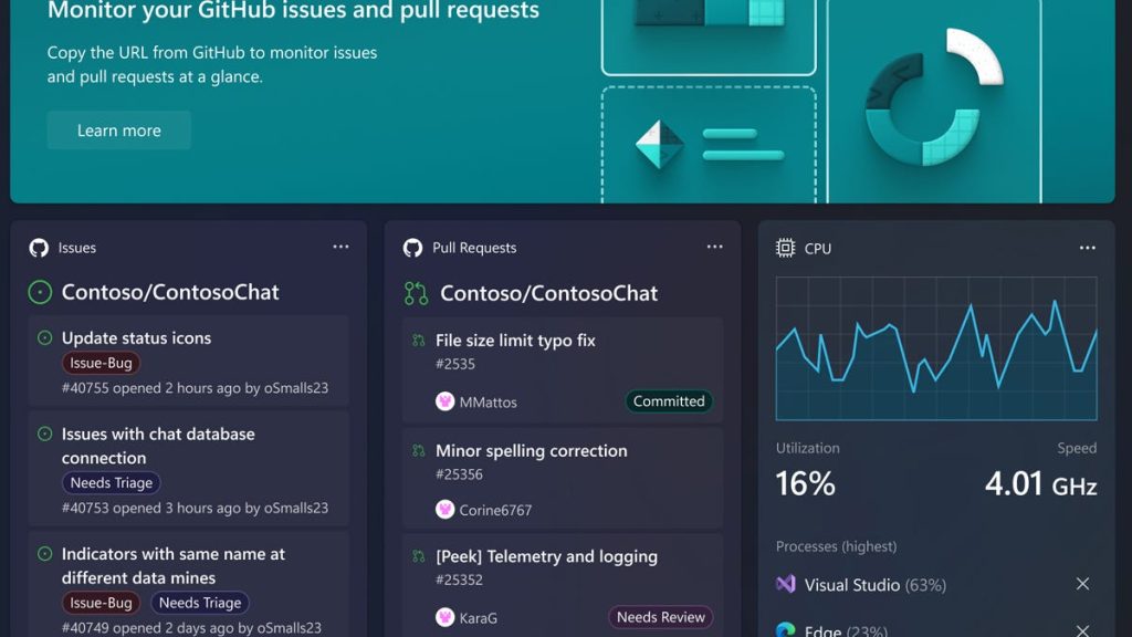 Outra ferramenta projetada para facilitar a carga de trabalho dos desenvolvedores é o Dev Home. Com suporte no Windows 11 e disponível na Microsoft Store, o Dev Home oferecerá aos desenvolvedores uma maneira de gerenciar seus projetos e acompanhar diferentes fluxos de trabalho. Com este novo produto, você pode se conectar ao GitHub e configurar ambientes de desenvolvimento em nuvem, como Microsoft Dev Box e GitHub Codespaces. Você pode então adicionar widgets do GitHub para acompanhar suas tarefas de codificação e solicitações pull e monitorar o desempenho da CPU e GPU de um único local.