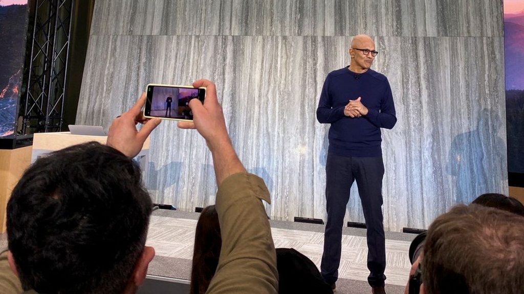 “Esta tecnologia vai reformular praticamente todas as categorias de software”, disse o chefe da Microsoft, Satya Nadella, na sede da empresa em Redmond, Washington, na terça-feira.