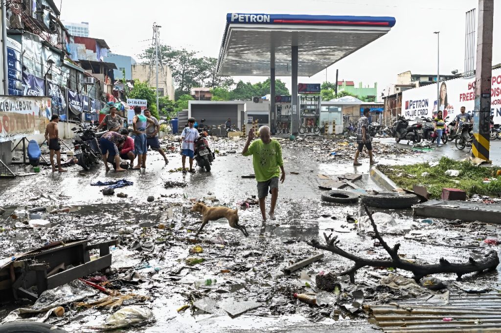 Moradores de Manila caminham em meio aos escombros após a passagem do Tufão Gaemi, que causou pelo menos 40 mortes no país.