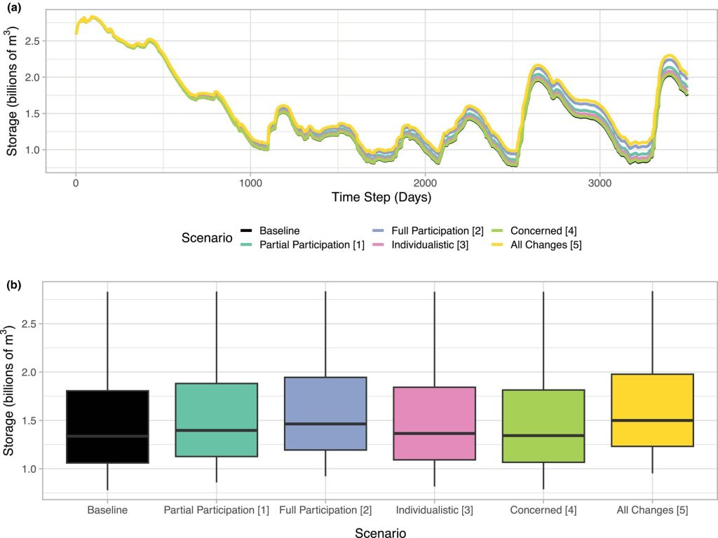 Os pesquisadores descobriram que o maior efeito na disponibilidade geral de água ocorreu quando o arquétipo dos “pretensiosos participantes” se converteu em “participantes”. Num cenário, quando metade dos “pretensiosos participantes” se converteram, houve um aumento de 4,5% no abastecimento de água – uma quantidade significativa de acordo com os investigadores.