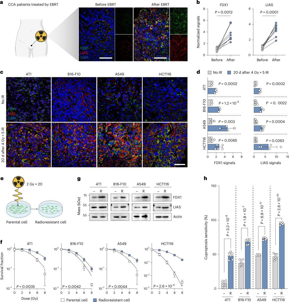 Up-regulation de FDX1 e LIAS em células tumorais após irradiação de raios X. Crédito: Natureza Nanotecnologia (2024). DOI: 10.1038/s41565-024-01784-1