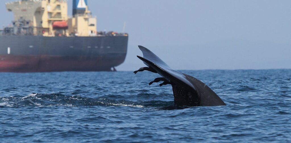 Você começa a fazer um mergulho lento e raso, mas sem muita urgência – afinal, sua espécie evoluiu ao longo de milhões de anos sem esse barulho misterioso, então por que você saberia o que fazer ao ouvi-lo? Um minuto depois, você é mortalmente atingido por um navio porta-contêineres.