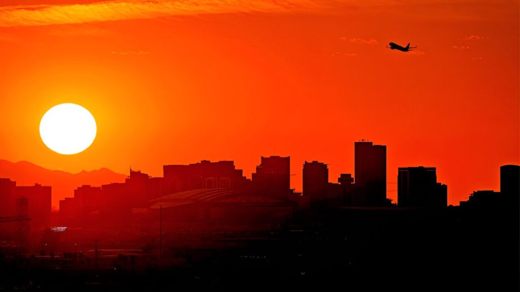Um jato decola do Aeroporto Internacional Sky Harbor em Phoenix, Arizona, em julho de 2023. Crédito: Associated Press