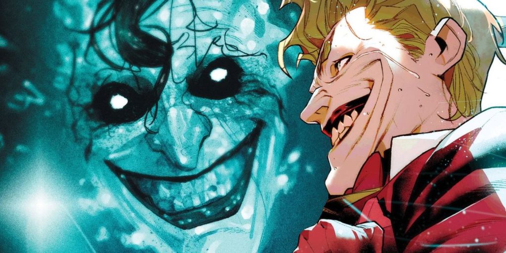 Em uma prévia para Batman: Os Bravos e Ousados #5 Na história, “Batman: The Winning Card Part 3”, de Tom King e Mitch Gerads, o Coringa continua a fazer barulho ao estrear como a mais recente ameaça de Gotham City. Depois de derrotar o Cavaleiro das Trevas em combate, o Coringa segue para um carnaval lotado. O vilão faz uma parada em um banheiro portátil, mas não para utilizá-lo. Ao entrar no banheiro, o Arlequim do Ódio abre o assento e desliza para dentro do tanque. Enquanto isso, um visitante da feira embriagado tropeça em busca de um lugar para se aliviar. Depois que seus amigos o castigam por sua má decisão de comer frituras além de beber em excesso, o homem vai até o mesmo banheiro que o Coringa visitou anteriormente. O bêbado recua ao sentir o cheiro do banheiro. E esperando dentro do tanque, submerso na água suja e azul, está o Coringa, com a faca na mão.