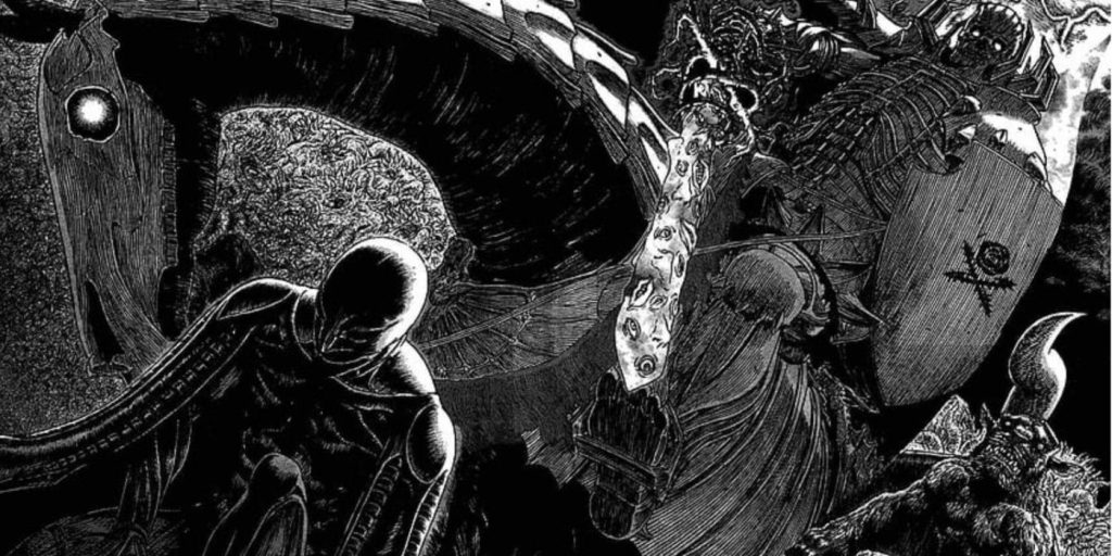 de Kentaro Miura berserk O mangá apareceu pela primeira vez na agora extinta revista Monthly Animal House antes de se mudar para o Young Anime de Hakusensha em 1992. A série em andamento se passa em um mundo de fantasia brutal e sombrio, onde monstruosidades vagam pela terra e atrocidades são comuns. A história segue Guts – também conhecido como o Espadachim Negro – enquanto ele persegue sua busca final por vingança contra Griffith, seu ex-amigo e comandante.