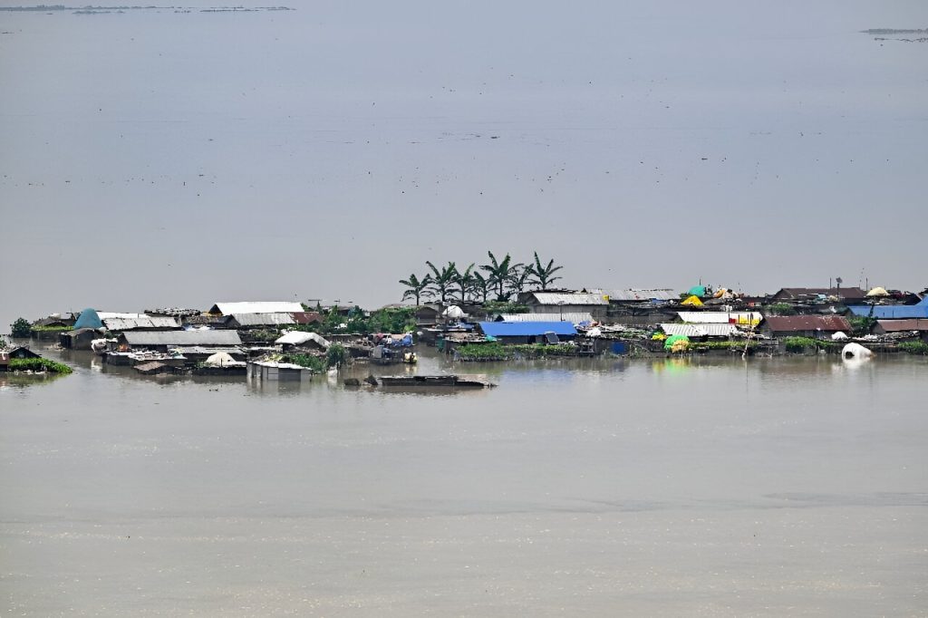 Fortes chuvas e rios transbordando inundaram partes do estado de Assam, no nordeste da Índia.