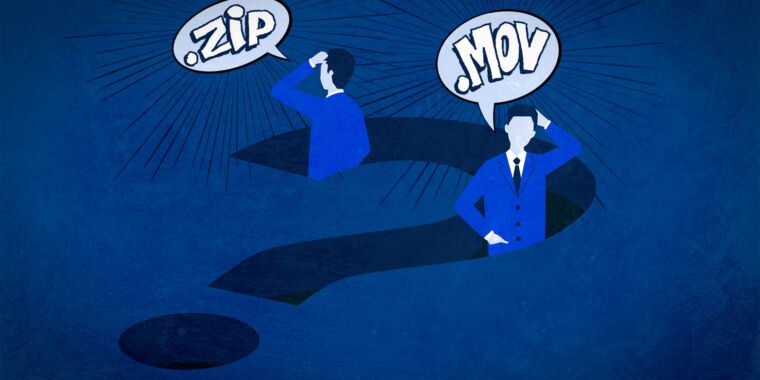 Muitos profissionais de segurança estão alertando que esses dois TLDs causarão confusão quando forem exibidos em e-mails, nas mídias sociais e em outros lugares. A razão é que muitos sites e softwares convertem automaticamente strings como “arstechnica.com” ou “mastodon.social” em um URL que, quando clicado, leva o usuário ao domínio correspondente. A preocupação é que e-mails e postagens de mídia social que se referem a um arquivo como setup.zip ou vacation.mov os transformem automaticamente em links clicáveis - e que os golpistas aproveitem a ambigüidade.