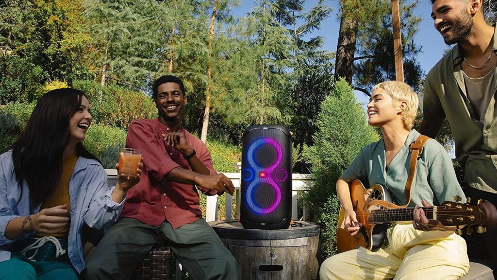 Claro, nenhuma festa está completa sem um show de luzes cativante. A JBL entende e é por isso que você pode desfrutar de luzes dinâmicas que dançam ao ritmo de suas músicas favoritas. O modelo também suporta a tecnologia PartyBoost, permitindo conectá-lo a alto-falantes compatíveis para obter um áudio ainda mais alto.