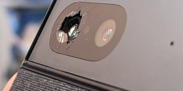 Já vimos esse problema exato várias vezes antes no mundo dos smartphones. A Samsung foi atingida por esse problema em 2016 no Galaxy S7 e novamente em 2021 no Galaxy S20, ambos os quais iniciaram ações coletivas. Nos casos da Samsung e do Google, o vidro quebrado não parece ter se estilhaçado com o impacto, o que normalmente mostra um ponto de impacto e uma teia de aranha externa. Nesses casos, um grande buraco redondo aparece no vidro – parece que o telefone foi baleado.