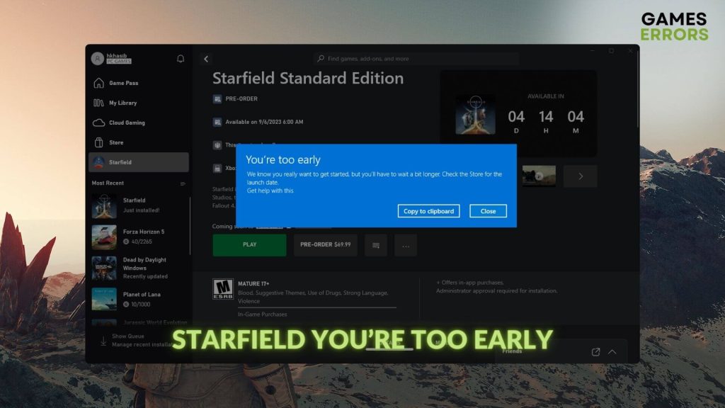 O que devo fazer para me livrar da mensagem de erro Starfield You’re Too Early no PC e Xbox?
