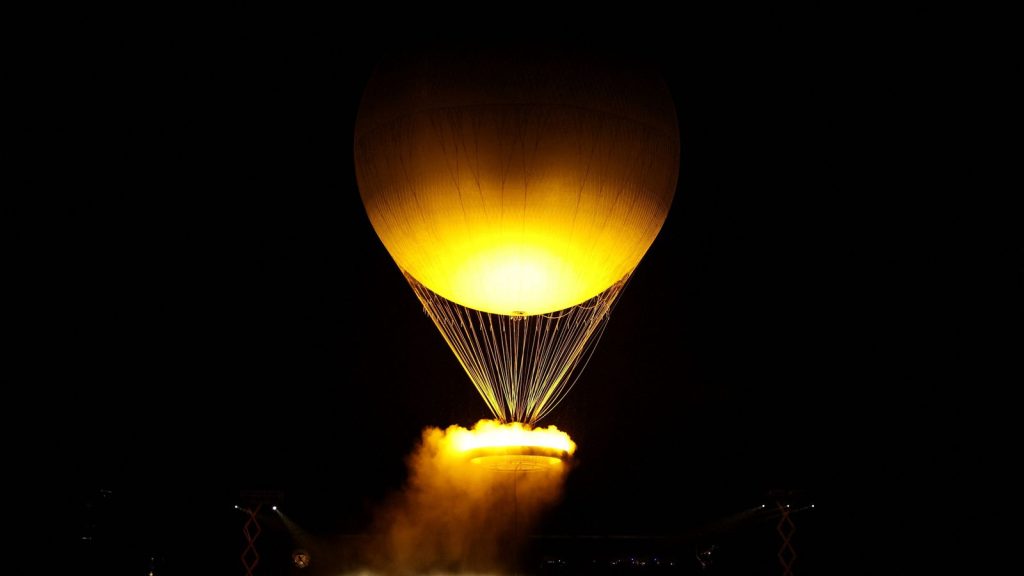 Uma vista aérea da Torre Eiffel durante a cerimônia de abertura. Foto: AP