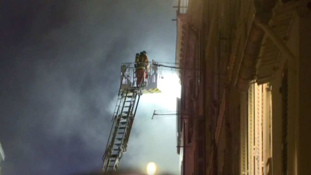 Imagens de TV mostraram nuvens de fumaça subindo das ruínas enquanto os bombeiros tentavam apagar as chamas em Marselha.
