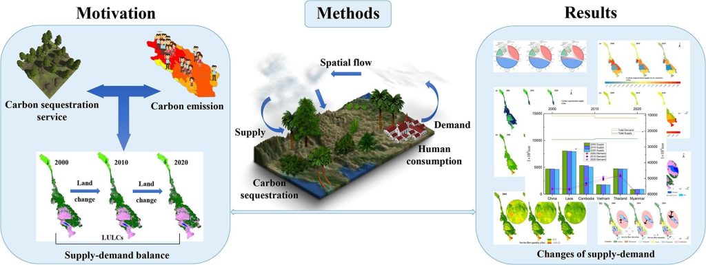 A Bacia do Rio Lancang Mekong (LMRB) conecta seis países no Sudeste Asiático. Para dar suporte ao desenvolvimento sustentável ecológico, econômico e social da LMRB, serviços de gestão de baixo carbono precisam ser implementados em cada país dentro da bacia. No entanto, ainda há uma falta de uma estrutura de avaliação eficaz e baseada em ciência para identificar a relação entre oferta-demanda e fluxo de serviços de sequestro de carbono (CSS).