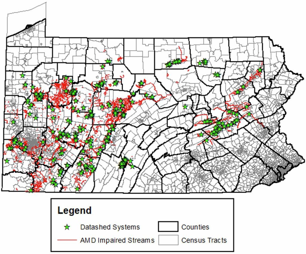 “Dados de sistemas de tratamento existentes mostram que eles protegem mais de 1.000 milhas, ou 1.500 quilômetros, de córregos e rios de danos causados por drenagem de minas. Os sistemas têm sido relativamente econômicos, protegendo córregos por US$ 5.700 por quilômetro por ano. No entanto, o estado tem quase 5.600 milhas, ou 9.000 quilômetros, de córregos e rios danificados restantes.”