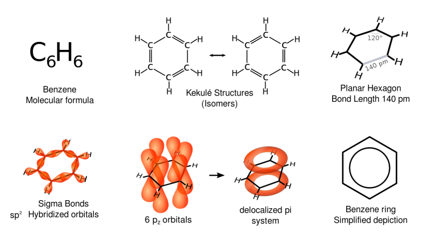 As várias representações do benzeno. Crédito: Vladsinger/Wikipedia
