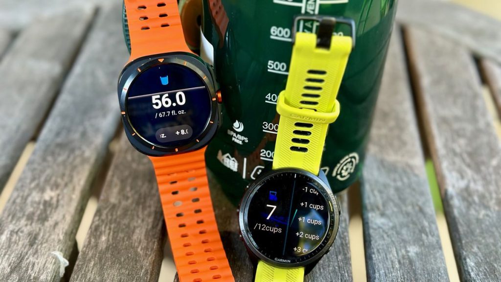Tanto o Wear OS quanto o WatchOS têm alguns aplicativos de monitoramento de água, como o WaterMinder e o Waterllama. O One UI Watch da Samsung tem um bloco de hidratação próprio, e os relógios Garmin permitem que você baixe um resumo de monitoramento de hidratação da loja Connect IQ.