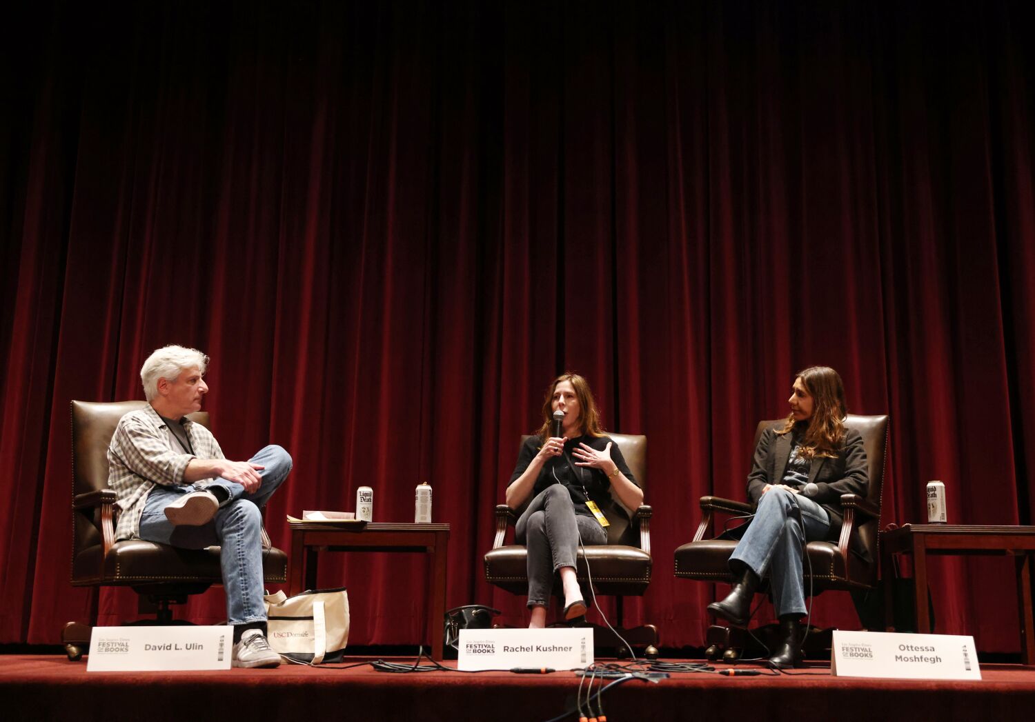 No caloroso e empolgante primeiro dia do Los Angeles Times Festival of Books, Rachel Kushner, autora do épico “The Flamethrowers”, e Ottessa Moshfegh, autora do punitivo “Lapvona”, sentaram-se nos assentos lotados do Norris da USC Theatre, conversando com o autor David Ulin sobre “o que a ficção tem a oferecer” e trazendo suas sensibilidades analógicas para uma base de fãs muito online.