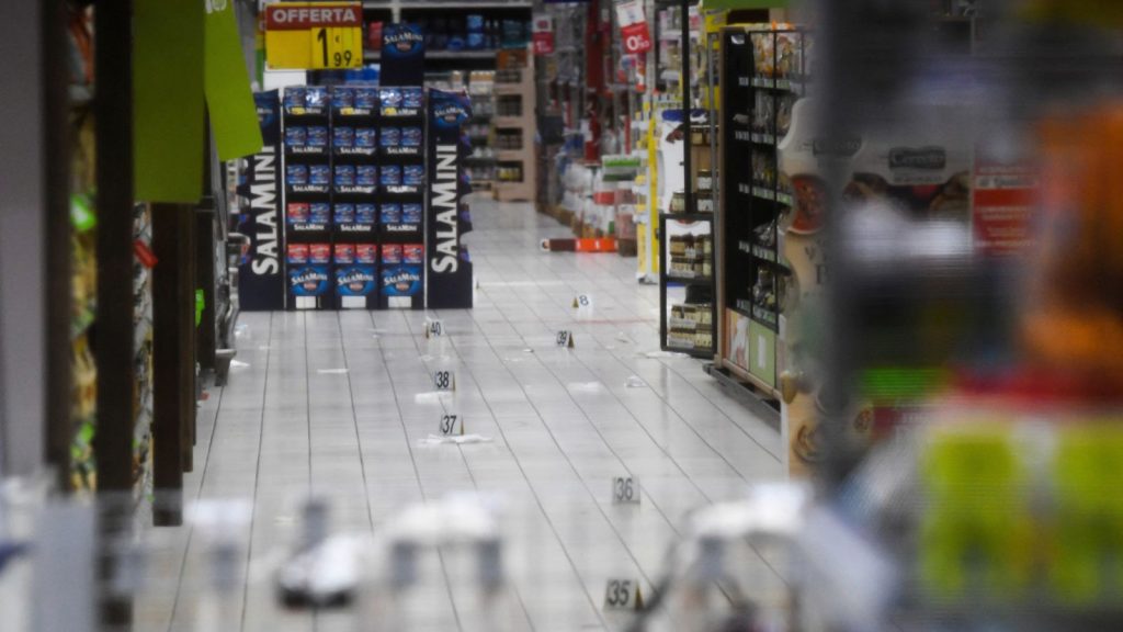 Um caixa de supermercado do sexo masculino, com cerca de 30 anos, foi morto no ataque, de acordo com a Sky Italy. Outras três pessoas foram levadas ao hospital e uma ficou ferida, mas não precisou de tratamento.