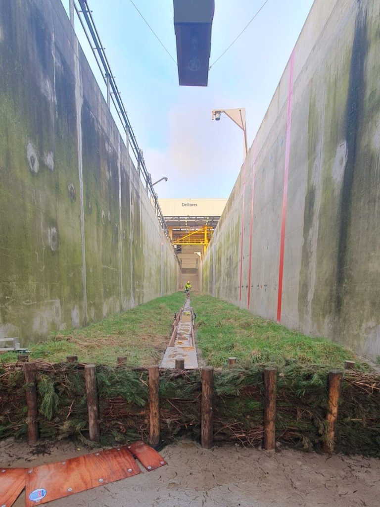 Os pântanos salgados podem servir como uma solução natural para a proteção contra inundações? Os investigadores do projecto “Living Dikes” transportaram 62 grandes blocos de sapais, contendo solo e vegetação, desde a costa da Frísia até ao Delta Flume em Deltares. Após quatro semanas de exposição a ondas extremas, quase todo o pântano salgado ainda está lá.