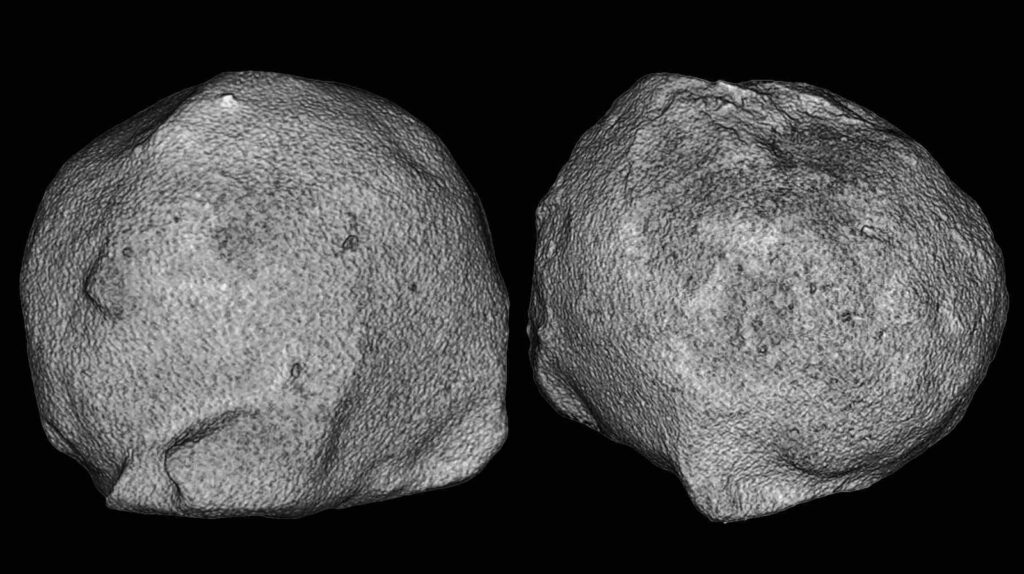 Empregando recursos de tomografia computadorizada, Farnell Barqué e a equipe de pesquisa produziram 512 “fatias” internas de cada pedra geradas por computador, revelando camadas e núcleos distintos.
