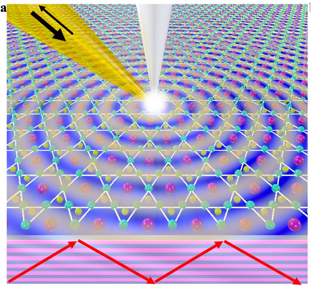 Para explorar como os plasmons interagiam com o metal, os pesquisadores cultivaram cristais únicos de CsV3Sb5 e então colocaram flocos finos do material em superfícies de ouro especialmente preparadas. Usando lasers para executar nanoimagens infravermelhas de varredura, eles observaram como os polaritons de plasmon do metal — ondas de elétrons interagindo com campos eletromagnéticos — mudavam de maneiras interessantes.