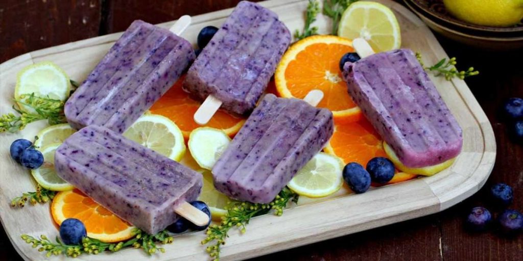 Esmague os mirtilos, o leite condensado, a água whey e o suco de limão.