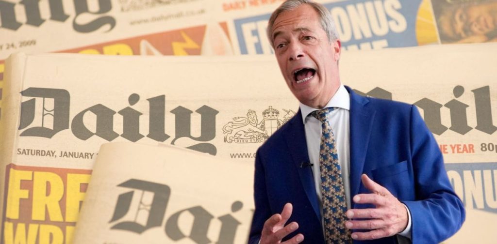 Quem melhor para representar as massas ignoradas e exploradas? Como gigante do legado do Reino Unido, a mídia oficial, o Mail é, portanto, o inimigo do povo que Farage pretende representar.