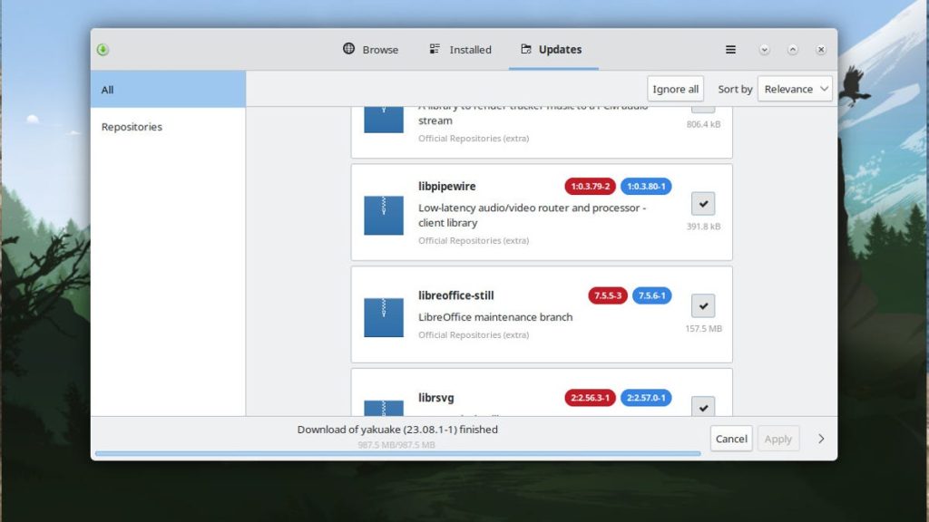 Alguns dos aplicativos instalados terão atualizações imediatas assim que você fizer login pela primeira vez. Como este é um lançamento contínuo, você pode ter certeza de que haverá um fluxo constante de atualizações. É claro que alguns títulos de software (como o LibreOffice) estão um pouco atrás do que está disponível. Isso dependerá de quando as equipes por trás do software disponibilizarão seus lançamentos para os diversos repositórios de distribuição. E graças ao sistema Flatpak integrado, você pode instalar ainda mais software (incluindo aplicativos proprietários de terceiros, como Spotify e Slack).