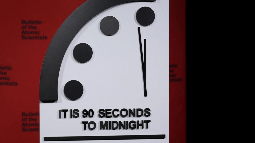 Ele o coloca 10 segundos mais perto da meia-noite, o mais próximo de uma catástrofe global que já esteve – estava em 100 segundos para a meia-noite desde 2020.
