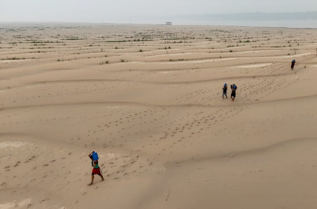 Somente os moradores mais jovens e fortes agora enfrentam a travessia de uma vasta e escaldante faixa de areia onde, em tempos normais, as águas do poderoso Rio Madeira correm na Amazônia brasileira.