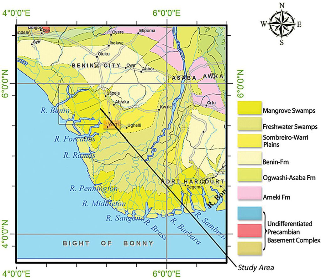 Mapa do delta do Níger mostrando a área de estudo. Crédito: Toda a Terra (2023). DOI: 10.1080/27669645.2023.2299109