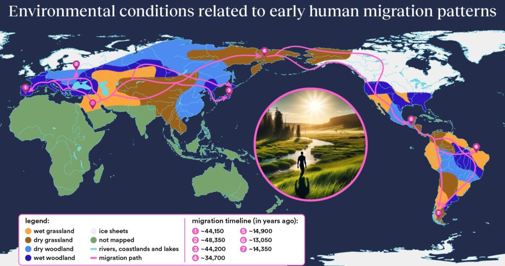 Os investigadores obtiveram novos conhecimentos sobre a Grande Migração Humana, revelando como as condições ambientais no norte da Eurásia e nas Américas moldaram a viagem dos antepassados ​​que deixaram África há dezenas de milhares de anos.