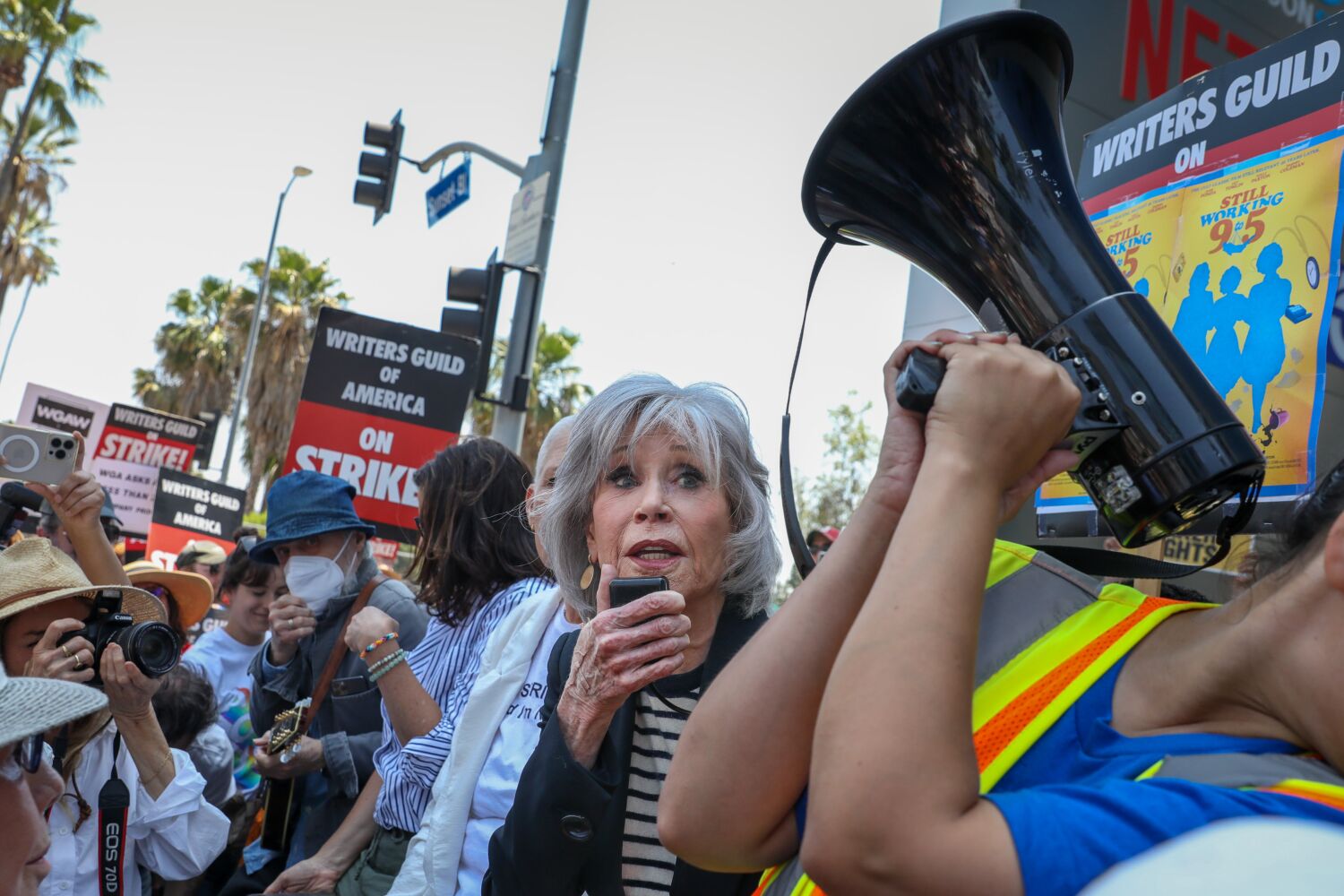 Atores de alto nível, incluindo Jane Fonda, têm se manifestado em apoio a escritores marcantes, juntando-se a eles em piquetes. Esta semana, o sindicato reuniu seus membros para se juntarem aos escribas do lado de fora dos estúdios da CBS Radford em Studio City.
