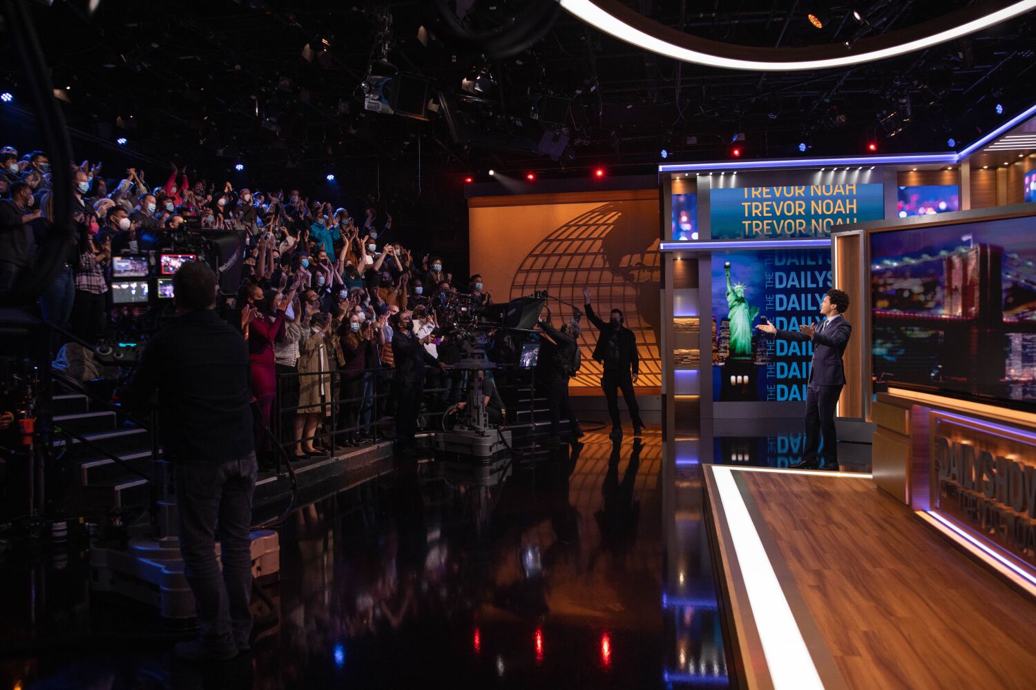 Noah estava reflexivo e subjugado na frente de uma platéia ao vivo no estúdio no West Side de Manhattan, onde o show é gravado, muitas vezes falando longamente sobre uma estada de sete anos que começou quando Jon Stewart entregou a cadeira de apresentador do influente talk show de comédia. .