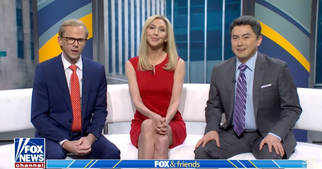 “Como este de Sean Hannity, ‘Rudy Giuliani é louco’, como você pode deixar de fora o resto? É ‘Rudy Giuliani é insanamente gostoso. Eu só quero lamber aquela tintura de cabeça’”, brincou Brian Kilmeade (interpretado por Bowen Yang).