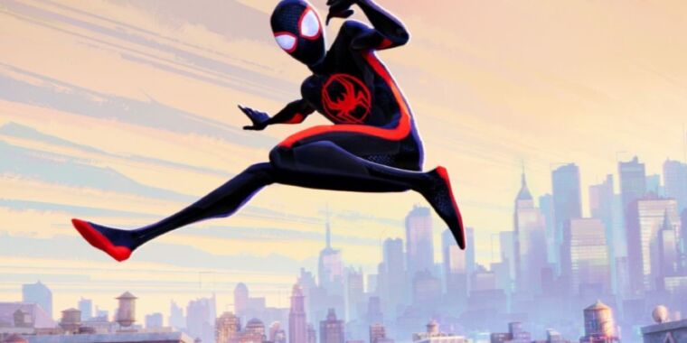 No verso-aranha foi o primeiro longa-metragem animado por computador a apresentar o super-herói favorito de todos – neste caso, Miles Morales (Shameik Moore), um grafiteiro adolescente de ascendência negra e porto-riquenha. Miles é mordido pela aranha radioativa canônica enquanto pintava em uma estação de metrô abandonada e desenvolve superpoderes semelhantes a aranhas. Ele se depara com uma trama de Wilson Fisk/Kingpin (Liev Schreiber) para abrir portais para universos paralelos onde a esposa e o filho de Fisk ainda estão vivos. No universo de Miles, Peter Parker, também conhecido como Homem-Aranha (Chris Pine), é morto por Fisk, e Miles assume o manto do Homem-Aranha.
