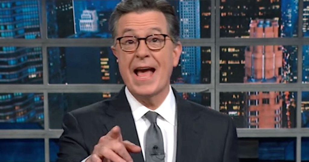 Colbert rolou um clipe de Bartiromo dizendo no ar sobre Dominion: “Eu entendo que Nancy Pelosi tem interesse nesta empresa.”