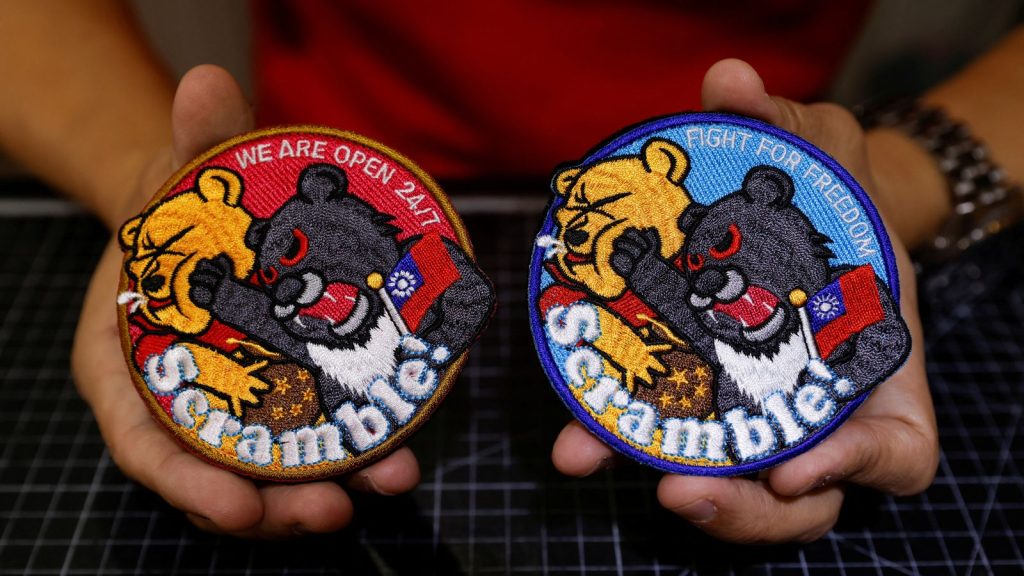 Hsu vende os adesivos em sua loja desde o ano passado, mas viu um aumento nos pedidos depois que a agência de notícias militar de Taiwan publicou no sábado uma foto do adesivo no braço de um piloto inspecionando um caça.