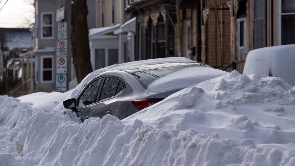 Pessoas foram vistas tentando liberar seus carros na quarta-feira, depois que até 30 centímetros de neve caíram nas cidades de Halifax e Sydney, no leste do Canadá.