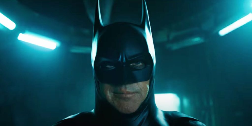 Durante o Super Bowl LVII, a DC e a Warner Bros. revelaram o primeiro trailer completo de O Flash, estrelado por Ezra Miller como o protagonista Barry Allen. O trailer também apresenta o tão esperado retorno do Batman de Burton-Verse, com Keaton vestindo o capuz pela primeira vez em mais de 30 anos. Além do trailer principal, WB lançou um grande anúncio de jogo para O Flash, apresentando algumas filmagens alternativas. Em uma cena em particular, o público pode ver um homem mais velho com longos cabelos grisalhos – presumivelmente o Bruce Wayne de Keaton – enquanto ele abre uma porta secreta para uma sala onde seus vários Batsuits estão alojados.