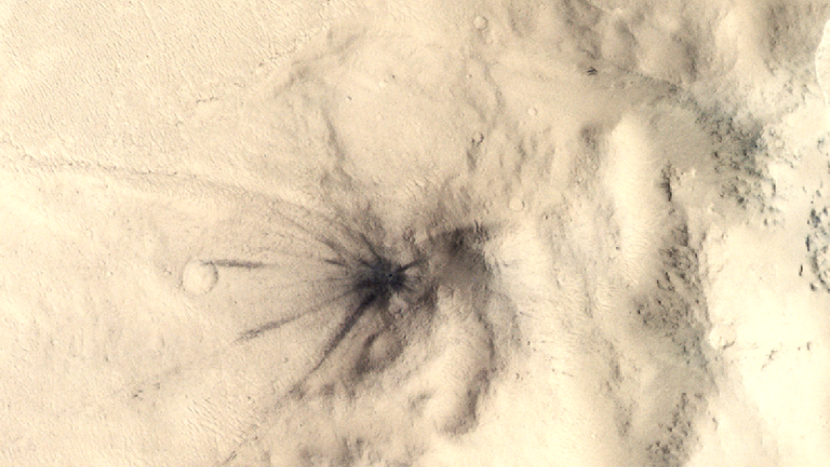 Um local de impacto relativamente recente na região de Cerberus Fossae, em Marte.