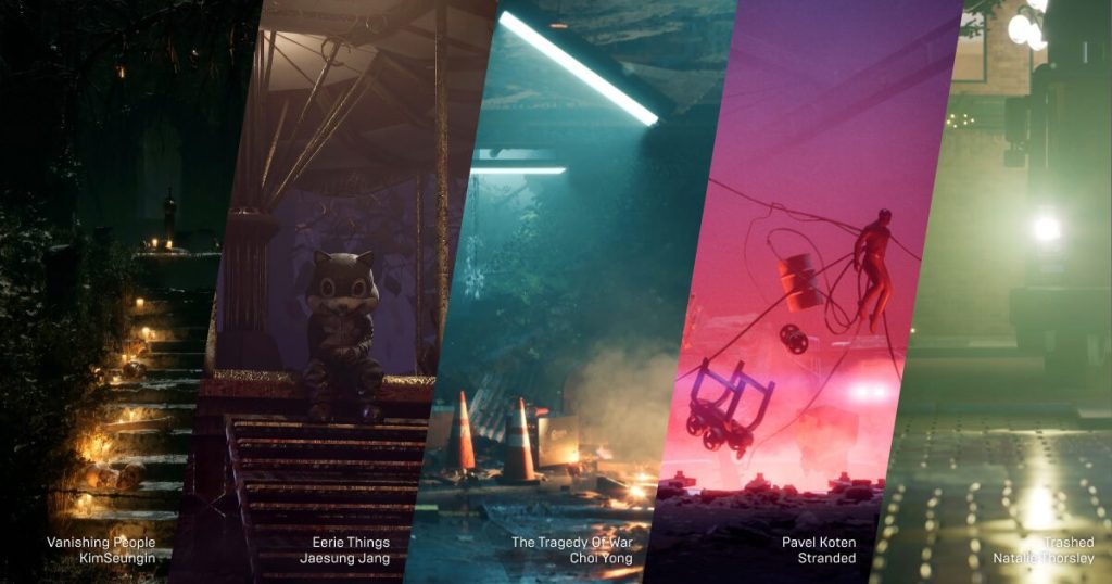 Nosso segundo Unreal Challenge ocorreu durante todo o mês de outubro. Neste desafio, incentivamos a comunidade a criar um vídeo curto de 10 a 60 segundos mostrando suas habilidades de construção de mundo com foco no design de nível e design de ambiente. Este desafio não era apenas sobre estética, mas visava inspirar a construção do mundo em experiências interativas.