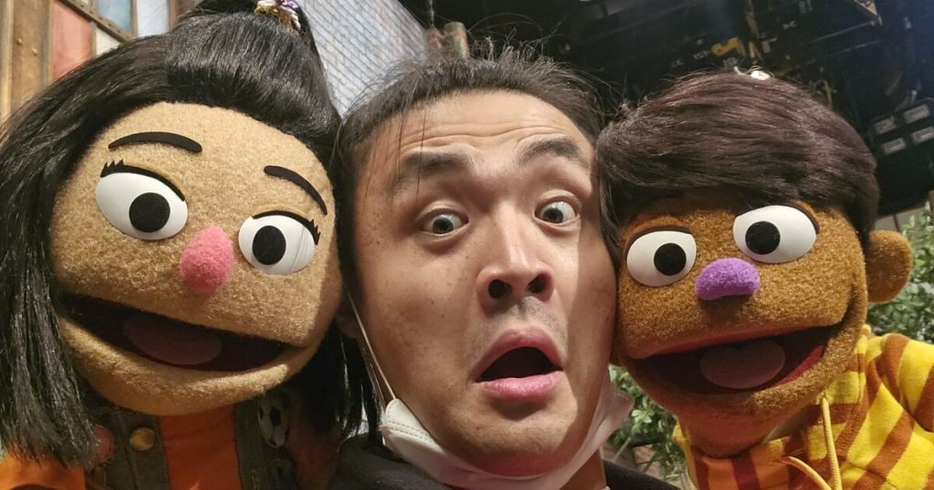 TJ é interpretado pelo dublador e marionetista Yinan Shentu, que também compartilhou várias selfies em êxtase com o mais novo Muppet de “Vila Sésamo”.