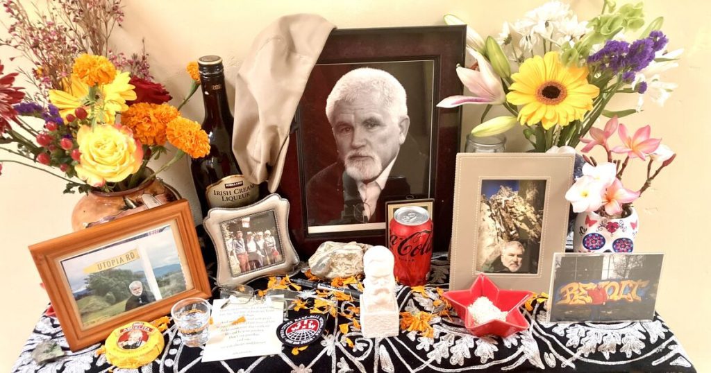 [To Mike:] Pensávamos que você ainda estaria conosco até o Natal, mas recentemente você estava hesitando se queria estar por perto para descobrir os resultados das eleições de novembro. Eu sei que você ficaria feliz que Lula ganhou. Neste Dia de los Muertos, seus filhos e eu honramos e lembramos de você com isto:
